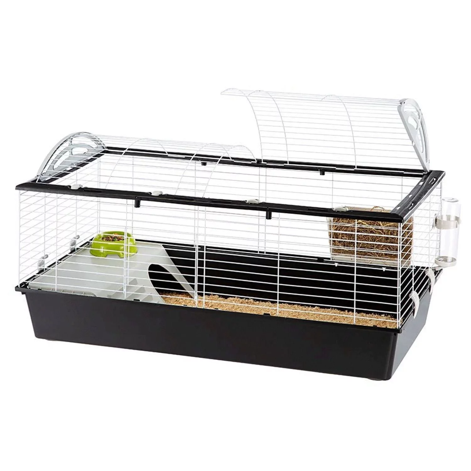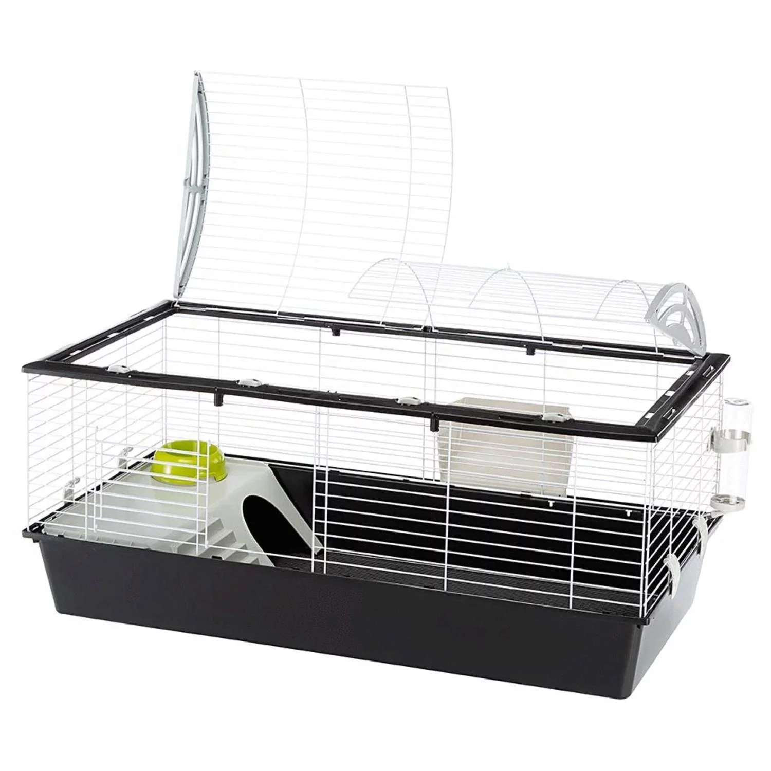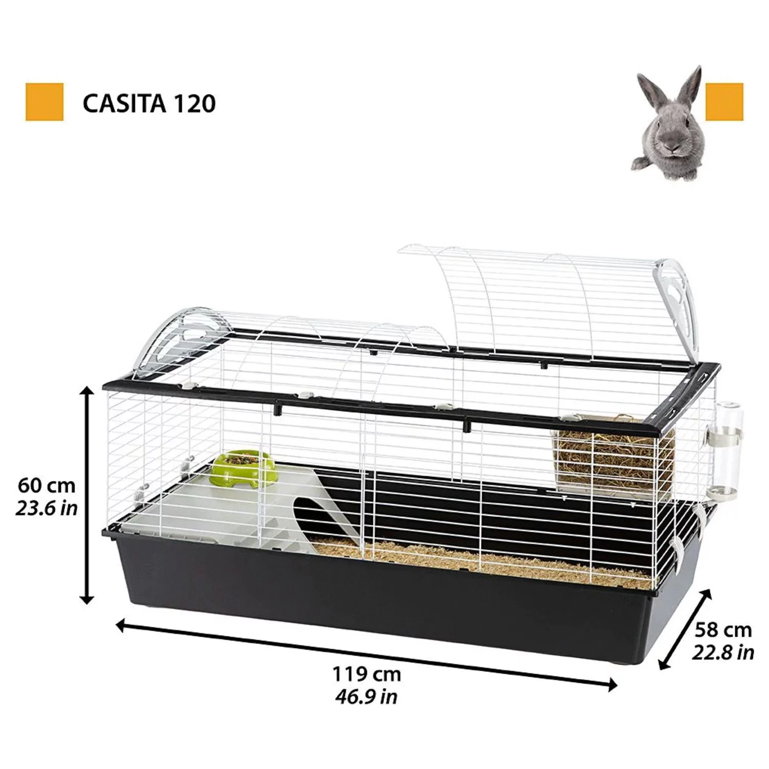 De Ferplast Casita 120 is zwart met wit en de afmetingen bedraagt: 119 x 58 x 61cm