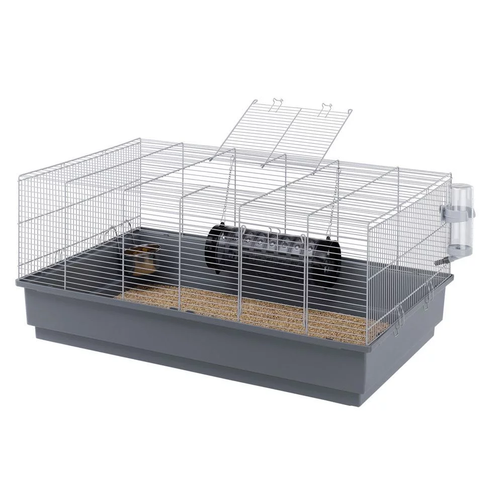 Deze kooi is klein maar bevat wel alles wat je rat nodig heeft. De bovenkant van de kooi is gemaakt van metalen tralies. De onderkant is gemaakt van kunststof zodat de bodembedekking niet snel uit de kooi kan vallen. De bovenkant is afneembaar zodat je het hok makkelijk en snel kunt schoonmaken.